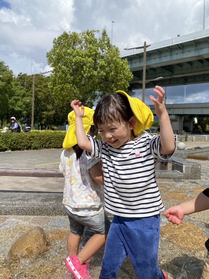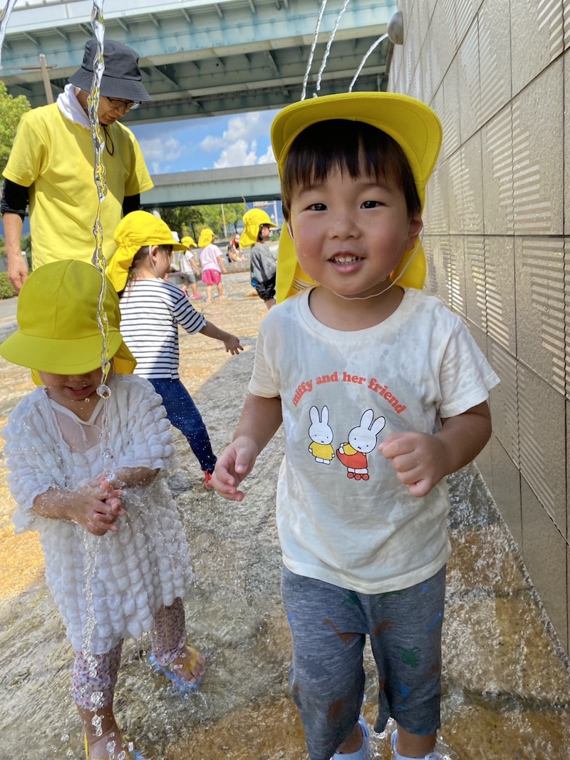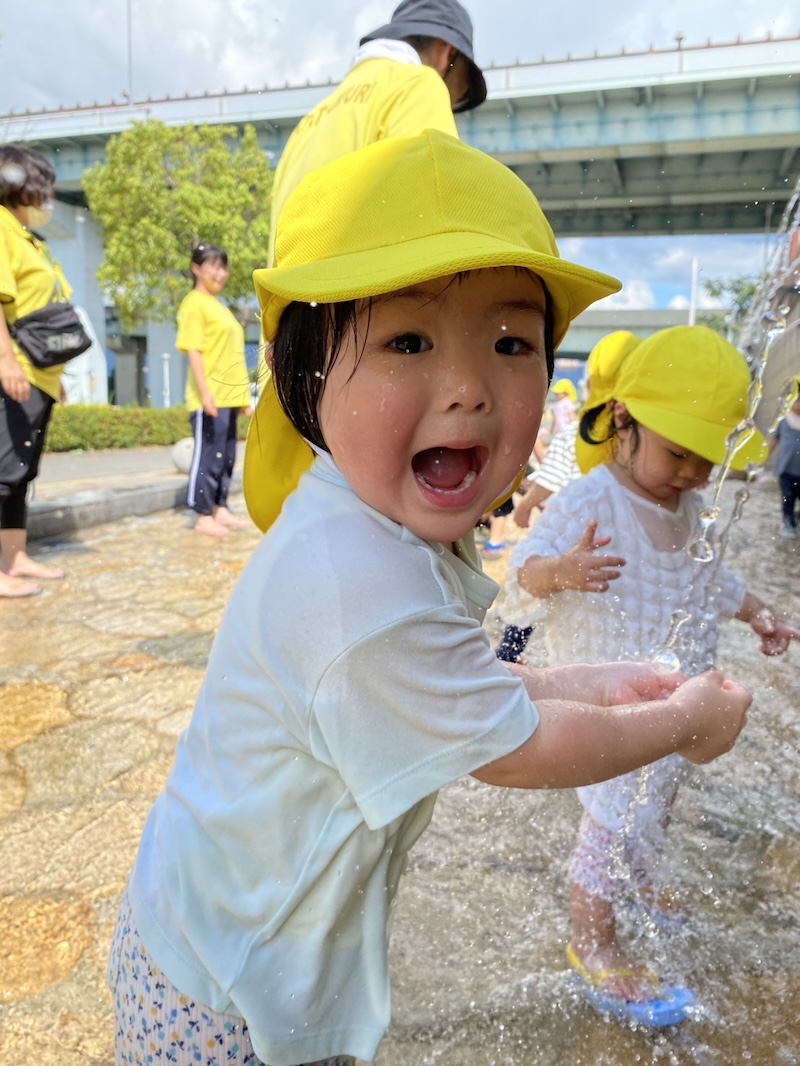 写真は、9月3日の園外保育の様子です。 南芦屋浜ウオーターパークで水遊びを楽しみました。