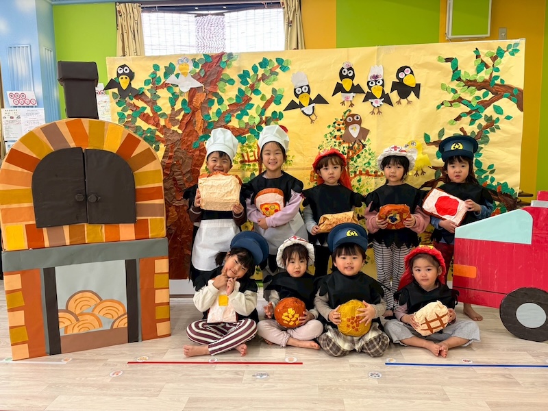 【2・3・4枚目】 生活発表会では「からすのパンやさん」をしました! 劇の中ではなわとびや歌にピアニカと普段の園での活動を取り入れて行いました。