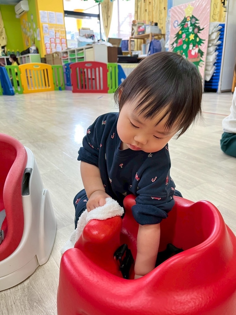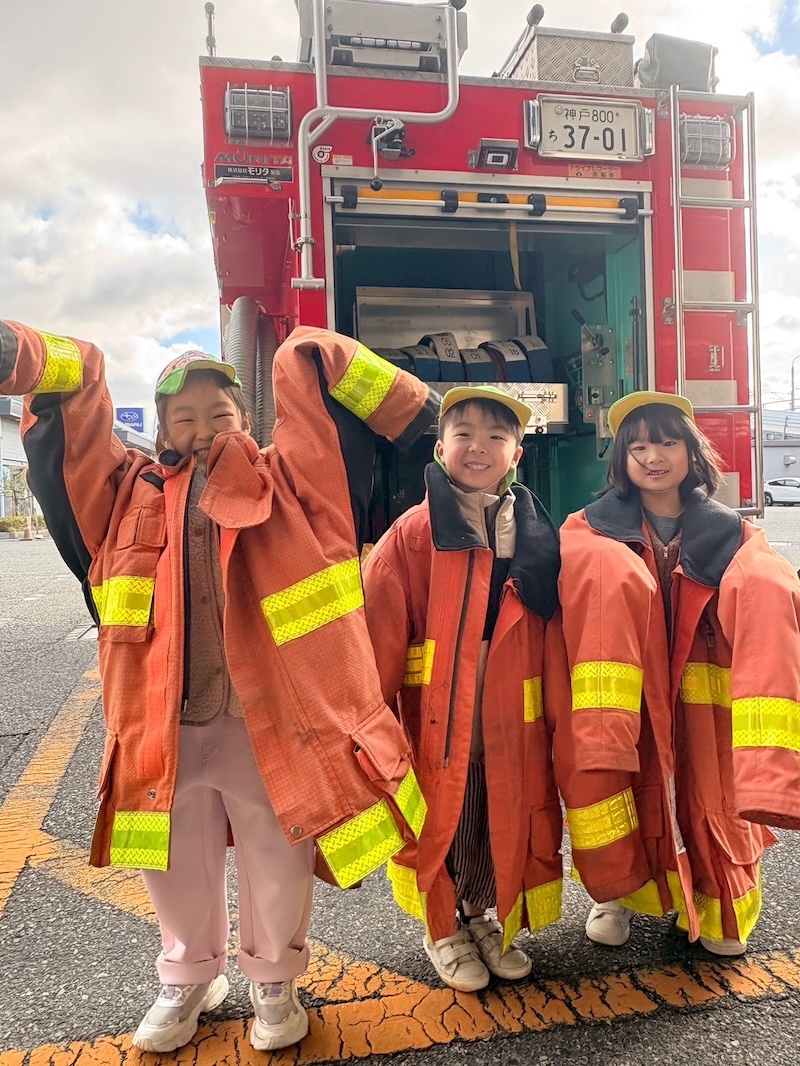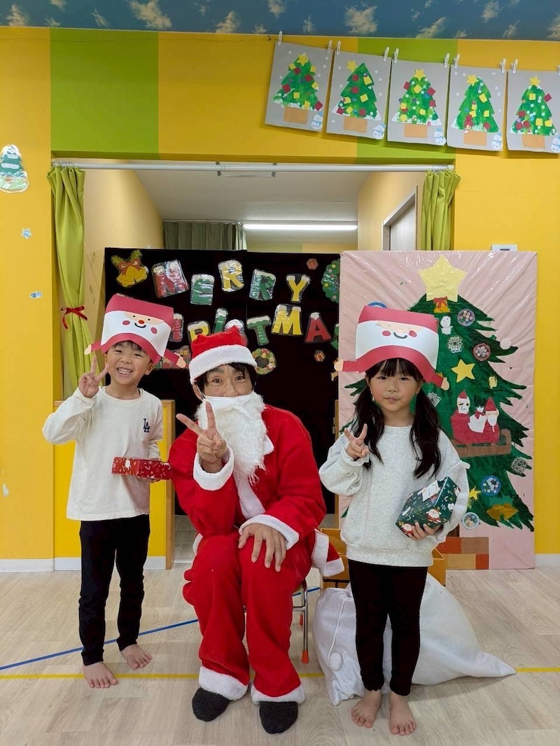 クリスマス会では、サンタさんも来てくれてとても楽しい会になりました。 消防署見学にも行き、消防車に乗せてもらったり、消防士さんの服を着させてもらいました! 大掃除にクリスマスお楽しみ会と12月もたのしく過ごすことができました。