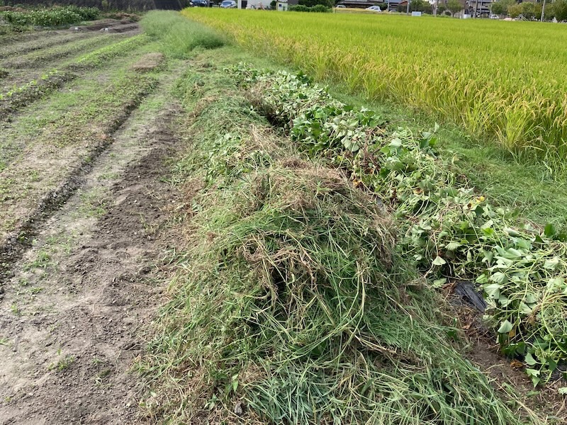 本日は草刈り、耕起、畝立てをしました。