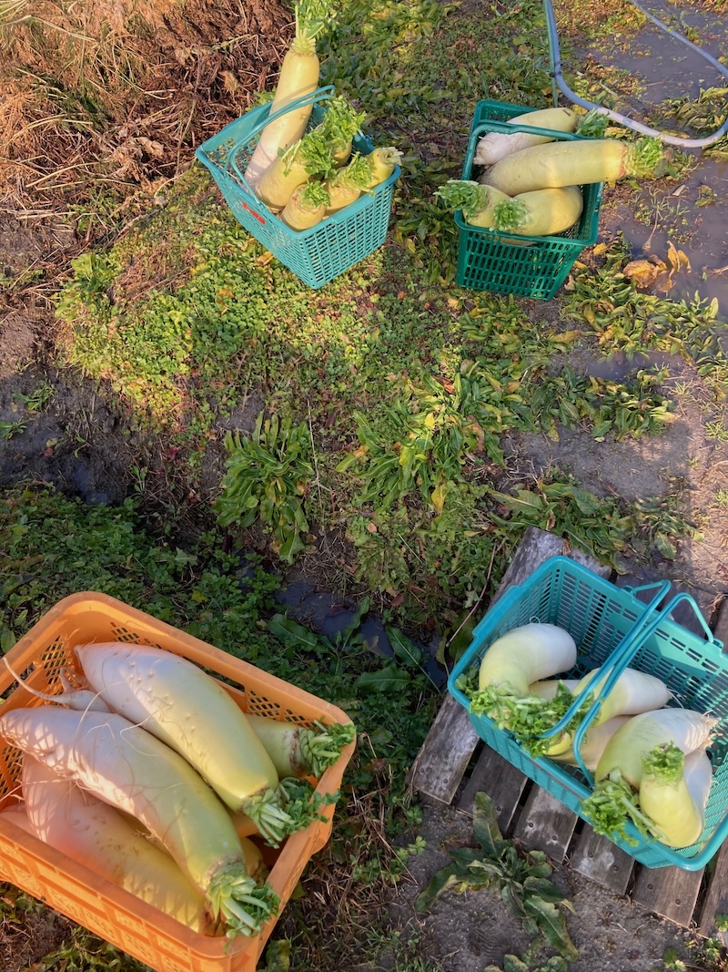 本日はクリスマス会用のダイコン、ニンジンの収穫、肥料撒きをしました。